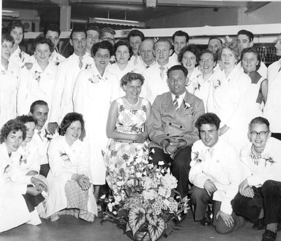 Usselerweg 42-48 Supermarkt Simon de Wit personeel bij heropening 1962.jpg