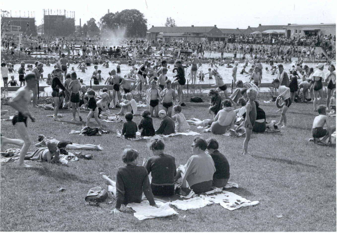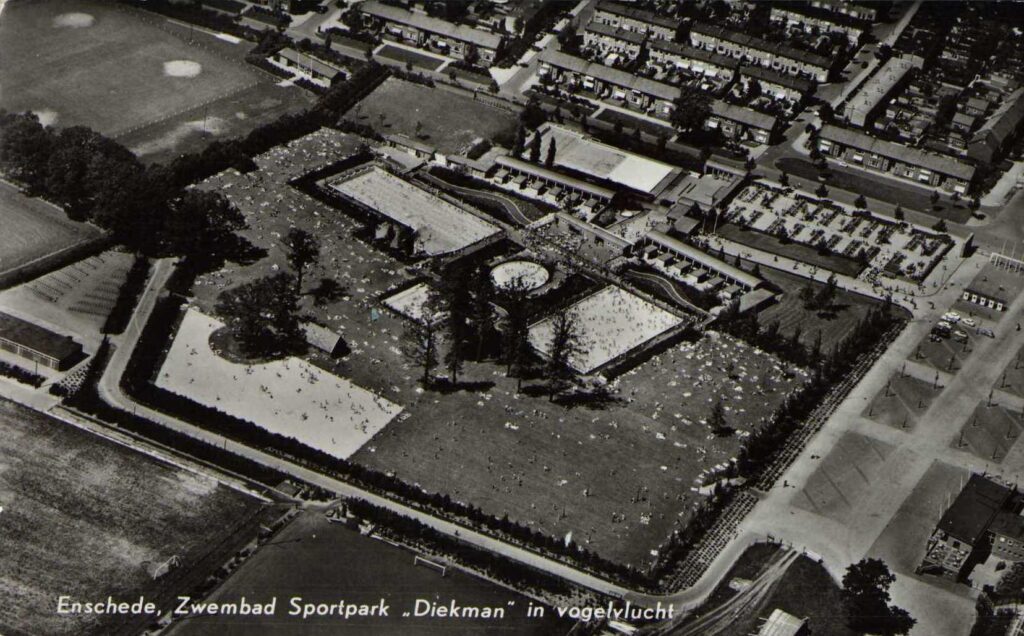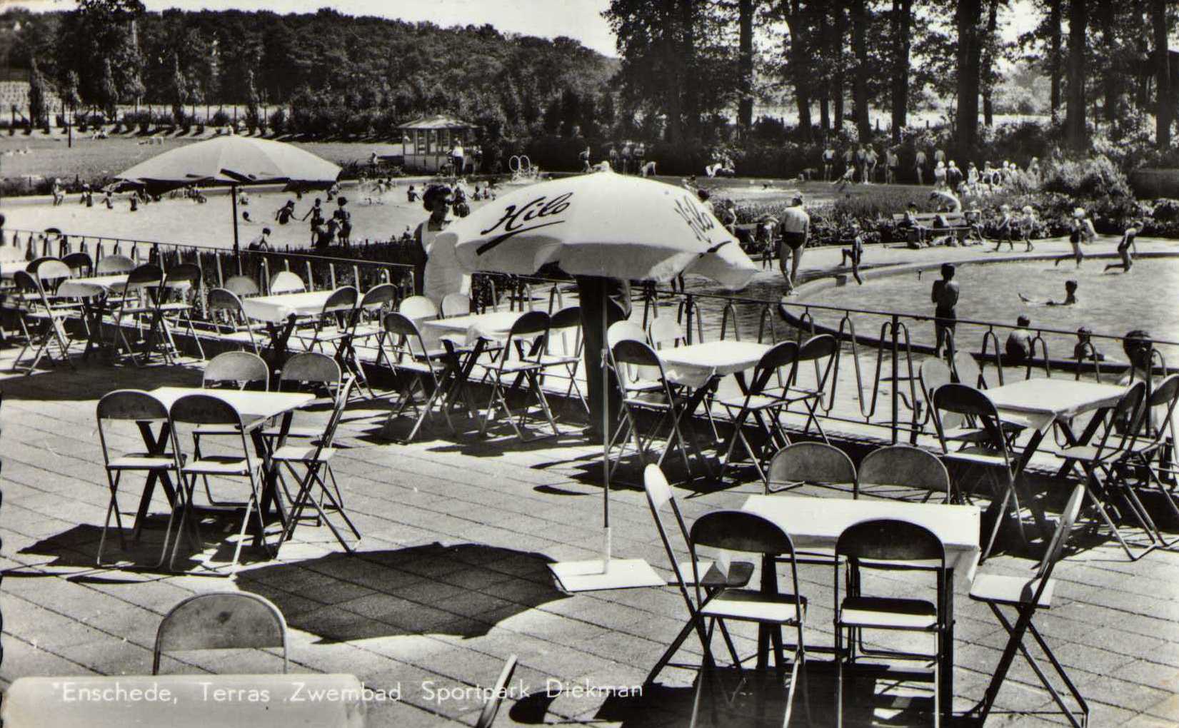 Het vroegere openlucht zwembad Diekman aan de J.J. van Deinselaan 20 had ook een uitgifteloket voor drinkwaren en snoep met terras.