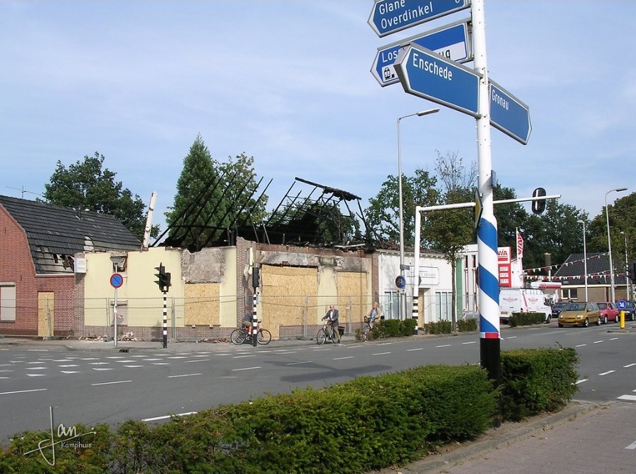 Gronausestraat 1305 hoek Kerkstraat Glanerbrug Grillroom Pyramide na brand 16-9-2003.jpg