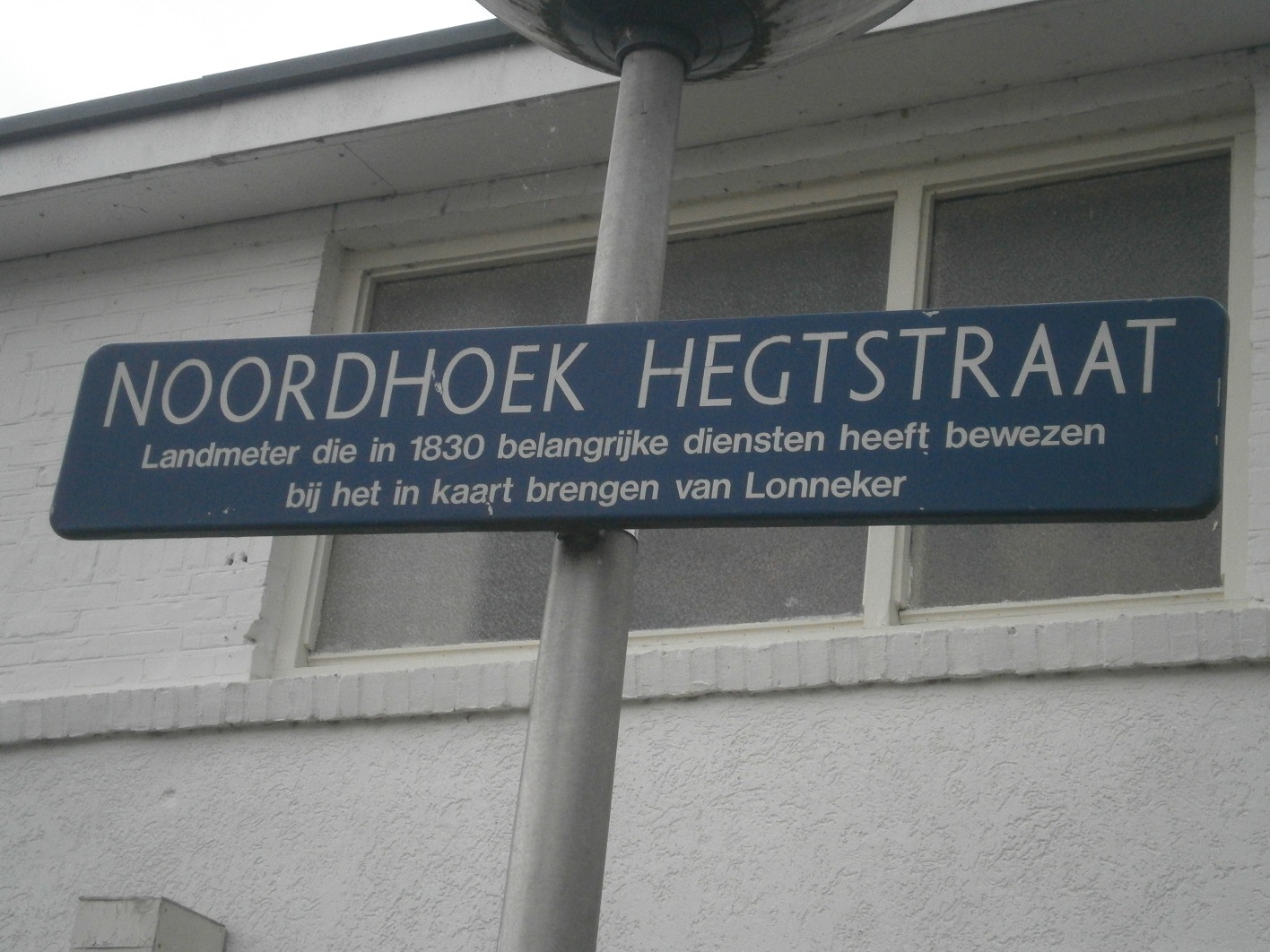 Naar Johannes Noordhoek Hegt, die in de dertiger jaren van de negentiende eeuw in de gemeente Lonneker woonachtig was en die in zijn hoedanigheid van landmeter bij het in kaart brengen van de gemeente Lonneker, alsmede bij de markeverdeling, belangrijke diensten moeten hebben bewezen (4 maart 1929 voormalig Lonneker). Omschrijving vastgesteld bij raadsbesluit van 29 mei 1936. bron: http://straatnamen.enschede.nl/straten/00723/?char=N