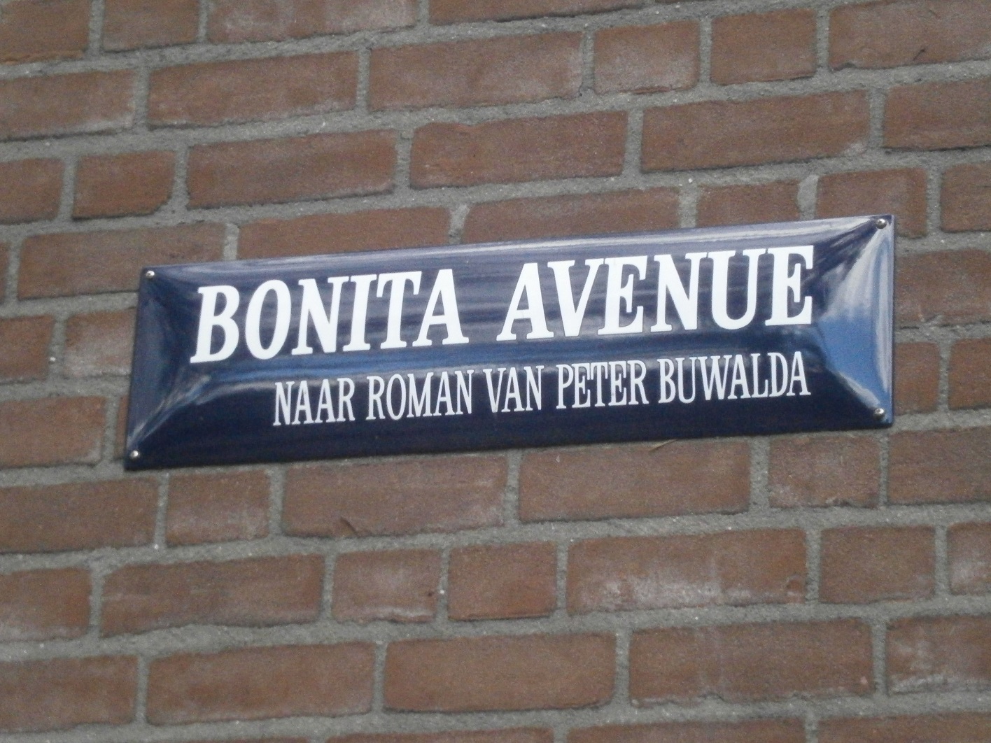 Dit straatnaambord is te vinden aan de muur van het gebouw Vrijhof op het terrein van Universiteit Twente. De Bonita Avenue is niet te vinden in het straatnamen overzicht van de Gemeente Enschede. De straatnaam is een eerbetoon aan Buwalda, die zijn boek grotendeels op de campus van de universiteit liet afspelen. De bestseller speelt zich deels af in de tijd van de vuurwerkramp in Enschede in mei 2000. zie meer hierover op: http://nos.nl/artikel/356901-bonita-ave ... wente.html