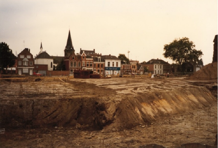 Hulsbeekgaarde feb. 1986 Zicht op bouwput vanaf Wenninkgaarde en Hulsbeekgaarde met zicht op panden aan de Noorderhagen..jpg