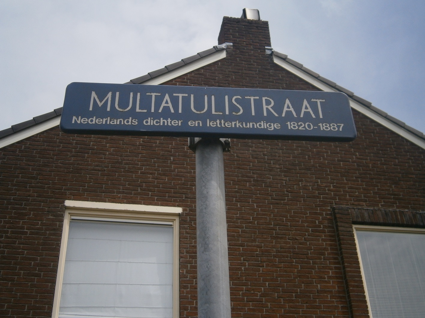 Naar Eduard Douwes Dekker, Ned. Letterkundige, beter bekend onder zijn pseudoniem "Multatuli" (Lat. = ik heb veel geleden), geboren 2 maart 1920 te Amsterdam, overleden 19 februari 1887 te Nieder Ingelheim. Auteur van een groot aantal werken, waarvan de Max. Havelaar" bovenaan staat (27 februari 1939). bron: http://straatnamen.enschede.nl/straten/00701/?char=M