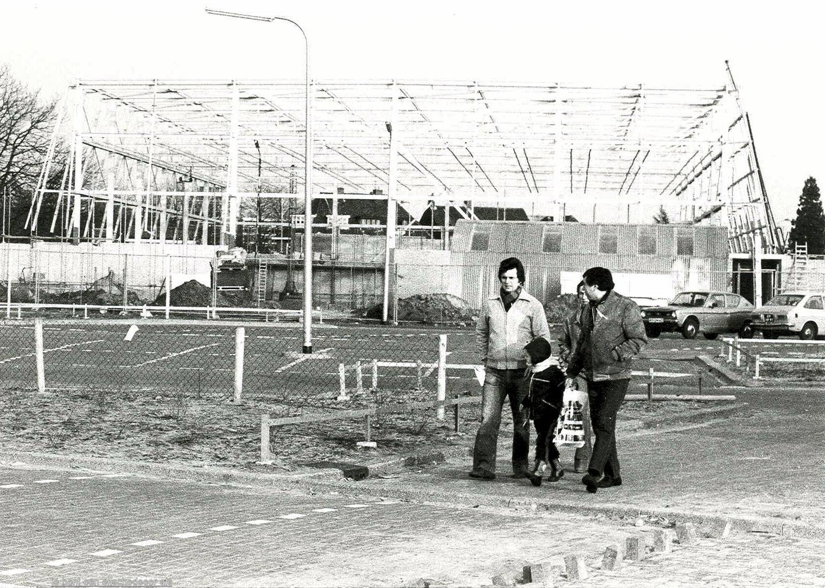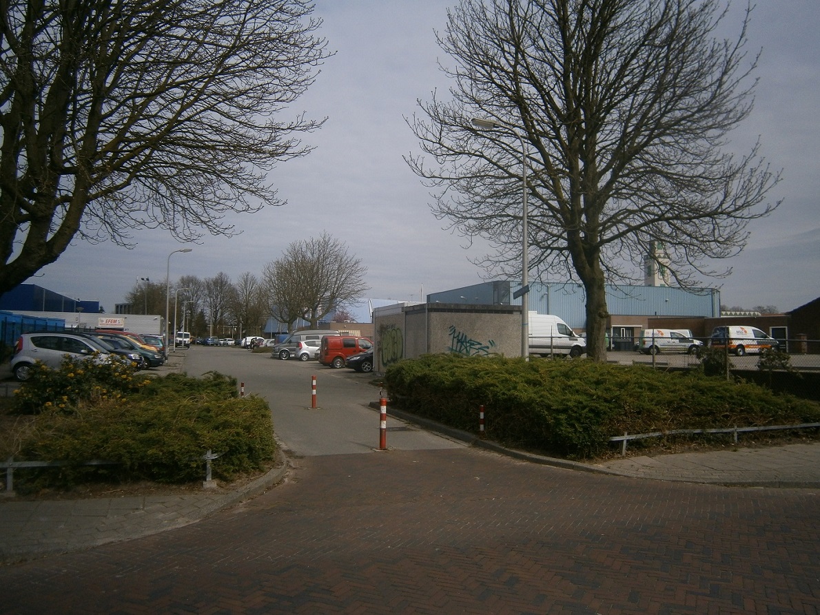 En dit gebouw staat er niet meer. Het is een kale vlakte met groene eilandjes. Eigenlijk wel aantrekkelijk. Maar niet toegankelijk. Er staat nog altijd een hekwerk omheen.