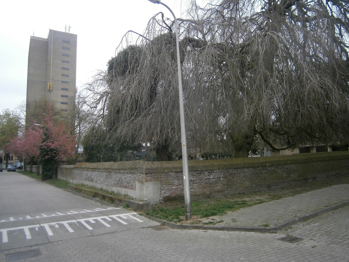 Veenstraat rechts muur stadskerkhof.JPG