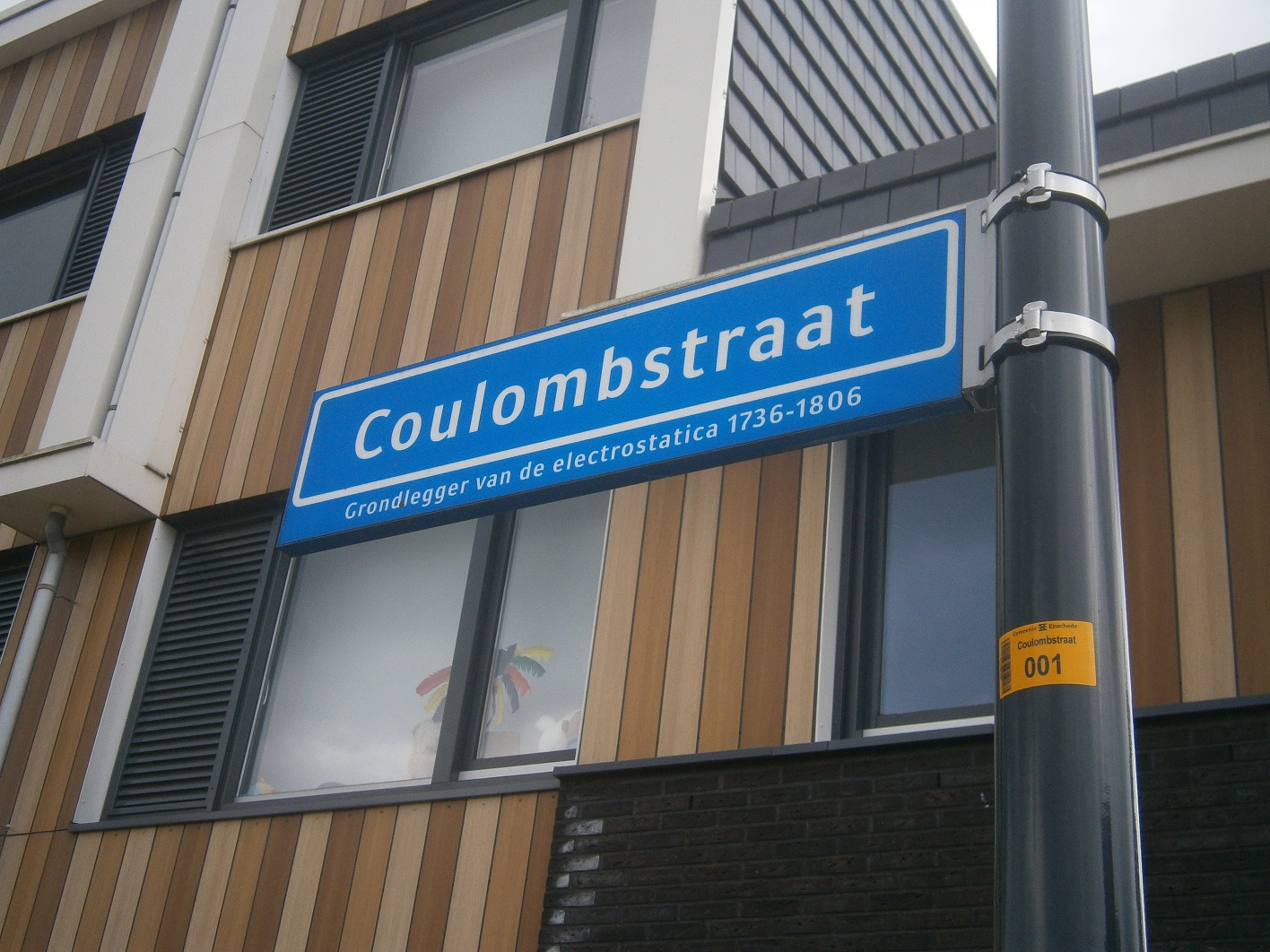 Naar Charles-Augustin de Coulomb, Frans natuurkundige, geboren 17 juni 1736 te Angoulême, overleden 23 augustus 1806 te Parijs. Grondlegger der mechanica en der elektrostatica; de eenheid van elektriciteitshoeveelheid is naar hem genoemd (21 mei 1928) voormalig Lonneker. Omschrijving vastgesteld bij raadsbesluit d.d. 29 mei 1936. bron: http://straatnamen.enschede.nl/straten/00192/?char=C