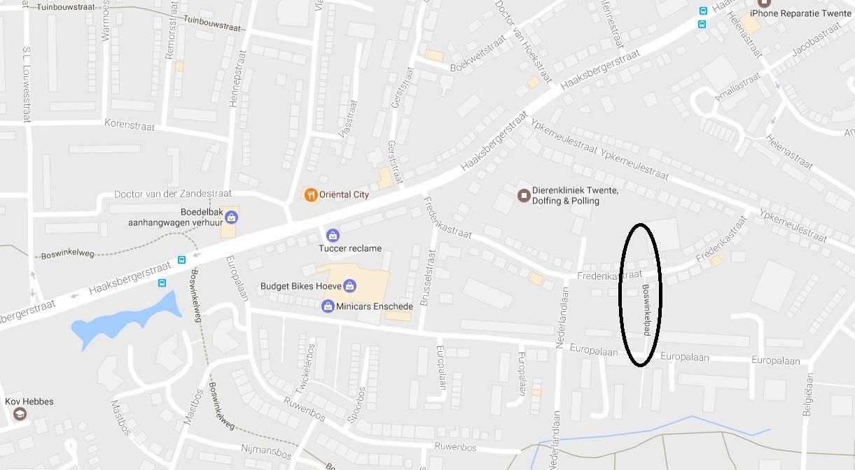 Het Boswinkelpad loopt van de Frederikastraat in z.-richting tot de Europalaan.
