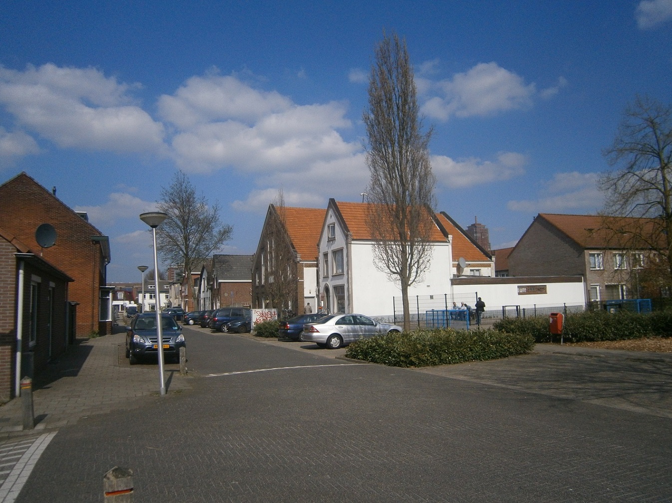Antwerpenstraat gezien vanaf de Beneluxlaan, rechts de flat die destijds gebouwd is voor de Vredesteinbandenfabriekarbeiders.jpg (45.14 KiB) 10185 keer bekeken