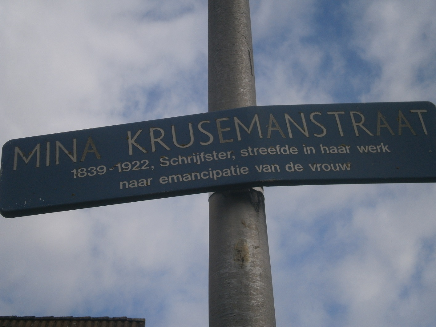 Naar Mina (Wilhelmina Jacoba Paulina Rudolphine) Kruseman, geboren 25 september 1839 te Velp, overleden 2 augustus 1922 te Boulogne-sur-Seine. Nederlandse letterkundige en strijdster voor de vrouwenemancipatie. Zij schreef onder meer "Mijn leven": (B/W 26 december 1982). bron: http://straatnamen.enschede.nl/straten/01422/?char=M