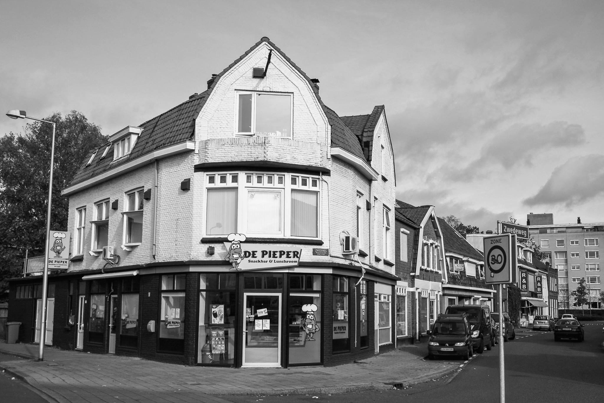 Pathmossingel 172 hoek Zwedeweg cafetaria lunchroom snackbar De Pieper vroeger locatie meubelzaak Poessé.
