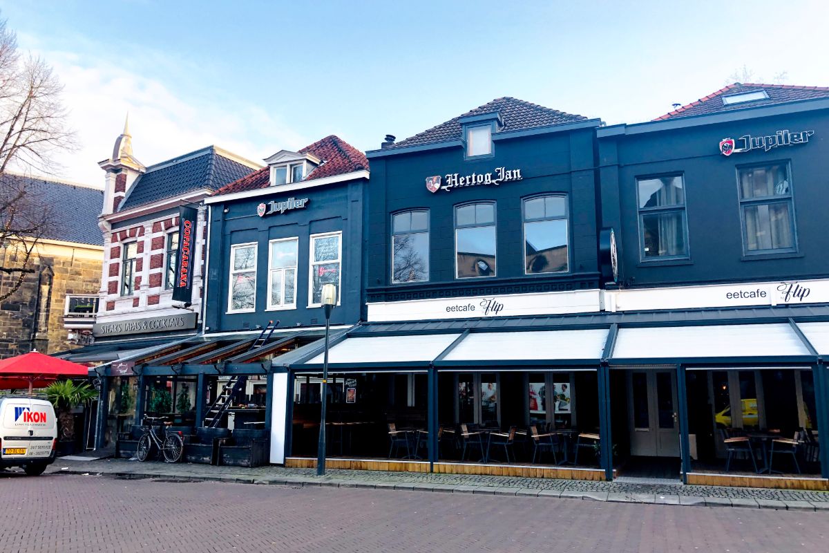 Langestraat 58-60 eetcafe bij Flip. Eerder zat hier o.m. eetcafe Central Park, De Drink-eet en De Hassebas.