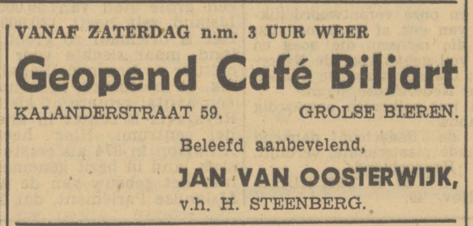 Op 2-12-1949 nam Jan van Oosterwijk het cafe bilart over van Steenberg.