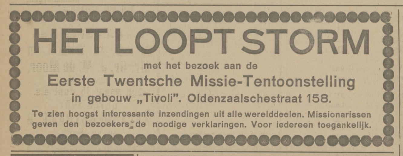 Oldenzaalsestraat 158 Cafe restaurant Tivoli H. Lunter advertentie Tubantia 28-8-1931.