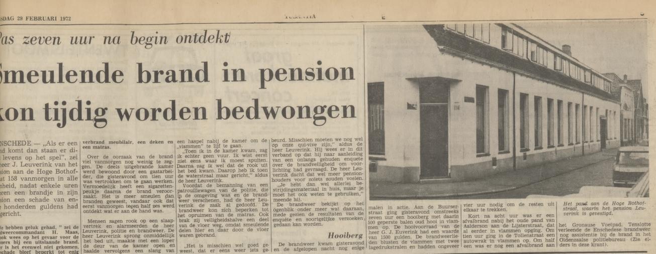 Hoge Bothofstraat 158 pension Leuverink krantenbericht Tubantia 29-2-1972