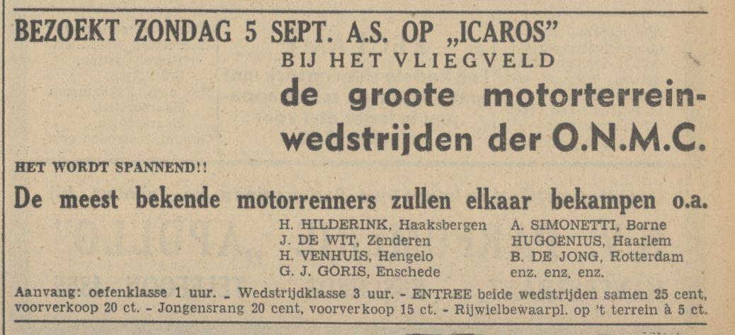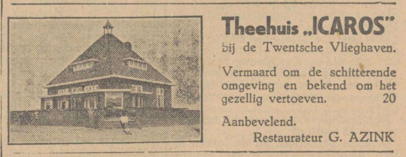 Met Hemelvaart naar Theehuis Icaros bij het vliegveld Twente advertentie Tubantia 3-5-1932.
