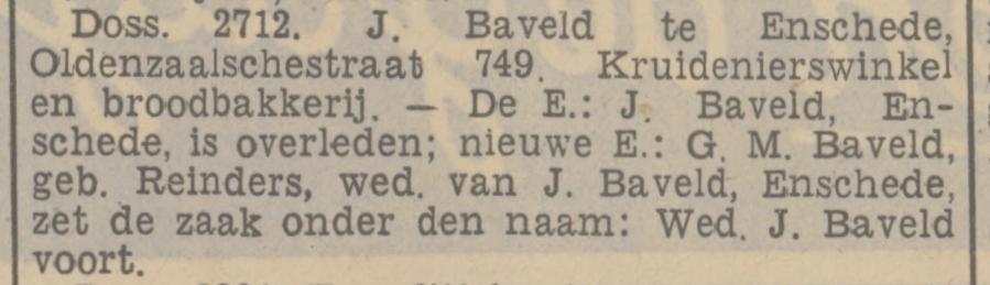 Baveld, Wed. J. Br.- en besch.b., Oldenzaalsestraat 749, Lonneker