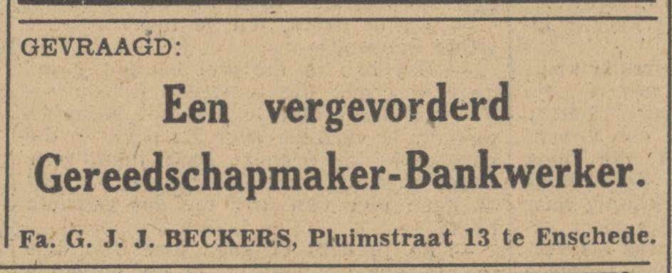 Beckers, G.J.J. IJzerw., huish.art., Pluimstraat 13