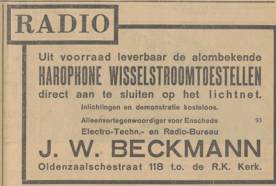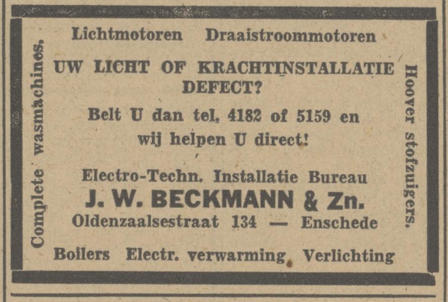 Beckmann Zn., J.W. Electrotechn. Inst.bur., mot.h., Oldenzaalsestraat 134