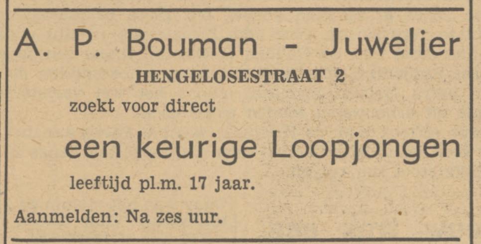 Bouman, A.P. Juwel., Hengeloschestraat 2,