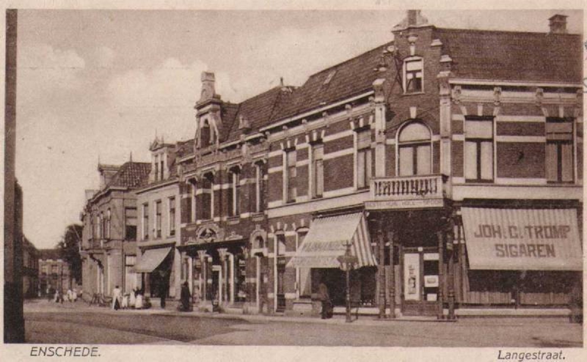 De winkel van Joh. C. Tromp aan de Haverstraat hoek Langestraatenschedeinansichten schreef: ↑vr sep 21, 2018 7:33 pm Sigarenkoker met spelfout.sigaretten koker tromp.JPGsigarenkoker.jpeg