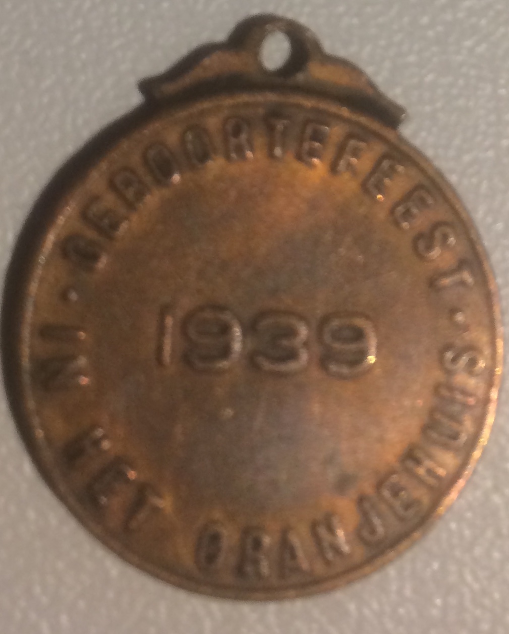 Hanger uit 1939 ter geboorte van Princes Beatrix. Zo groot als een stuiver.