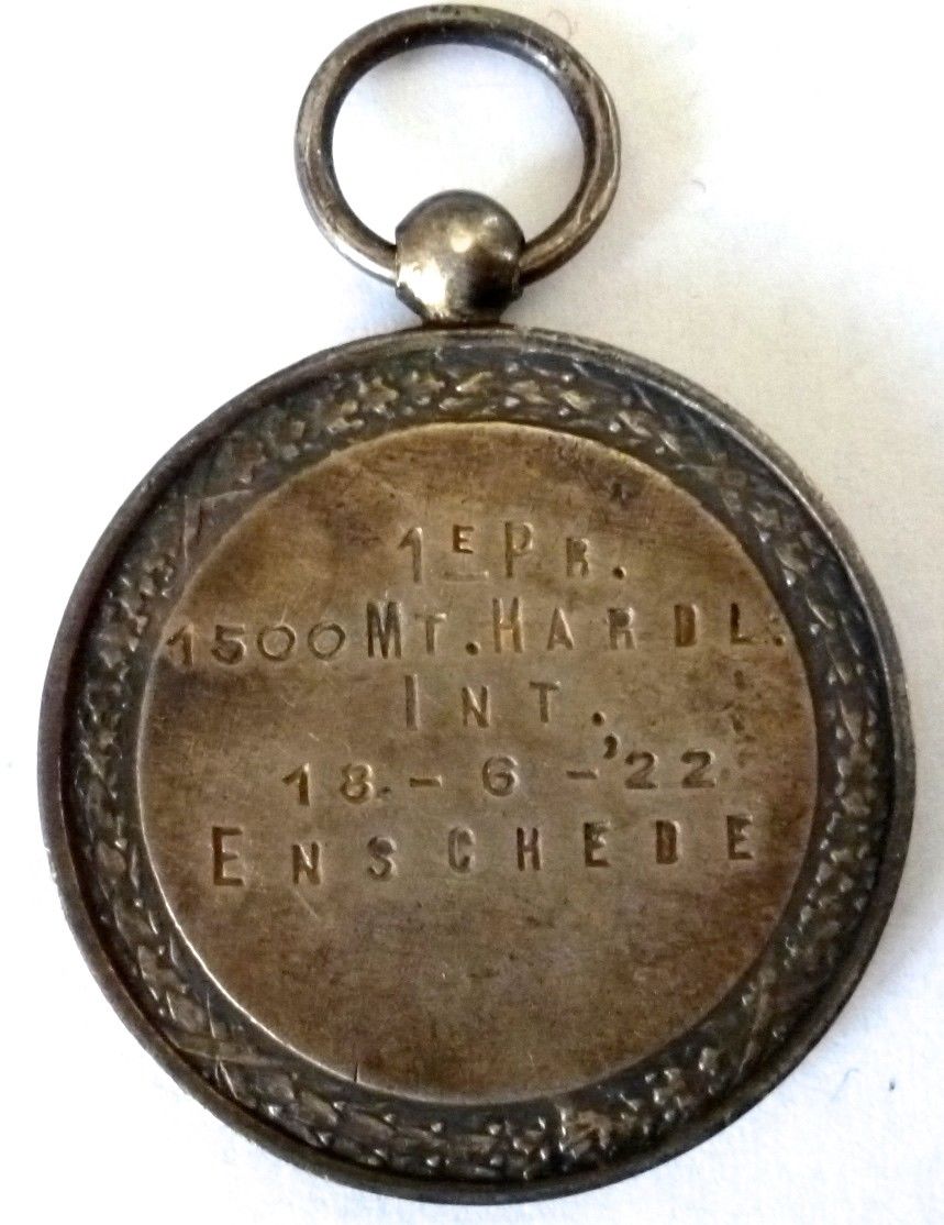 1e Prijs bij de internationale sportwedstrijd op 18.6.1922 in Enschede - 1500 m-Loop (eigen verzameling).