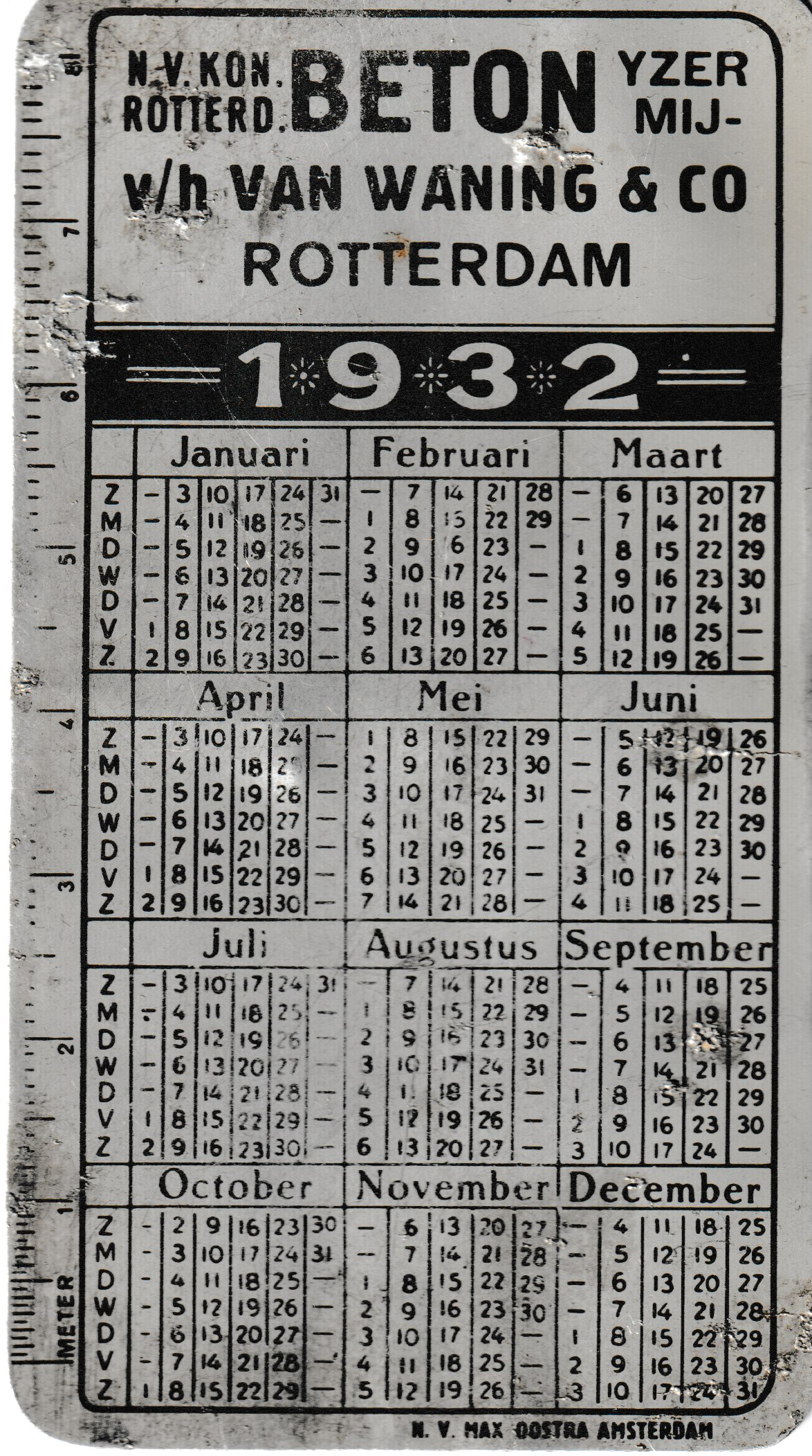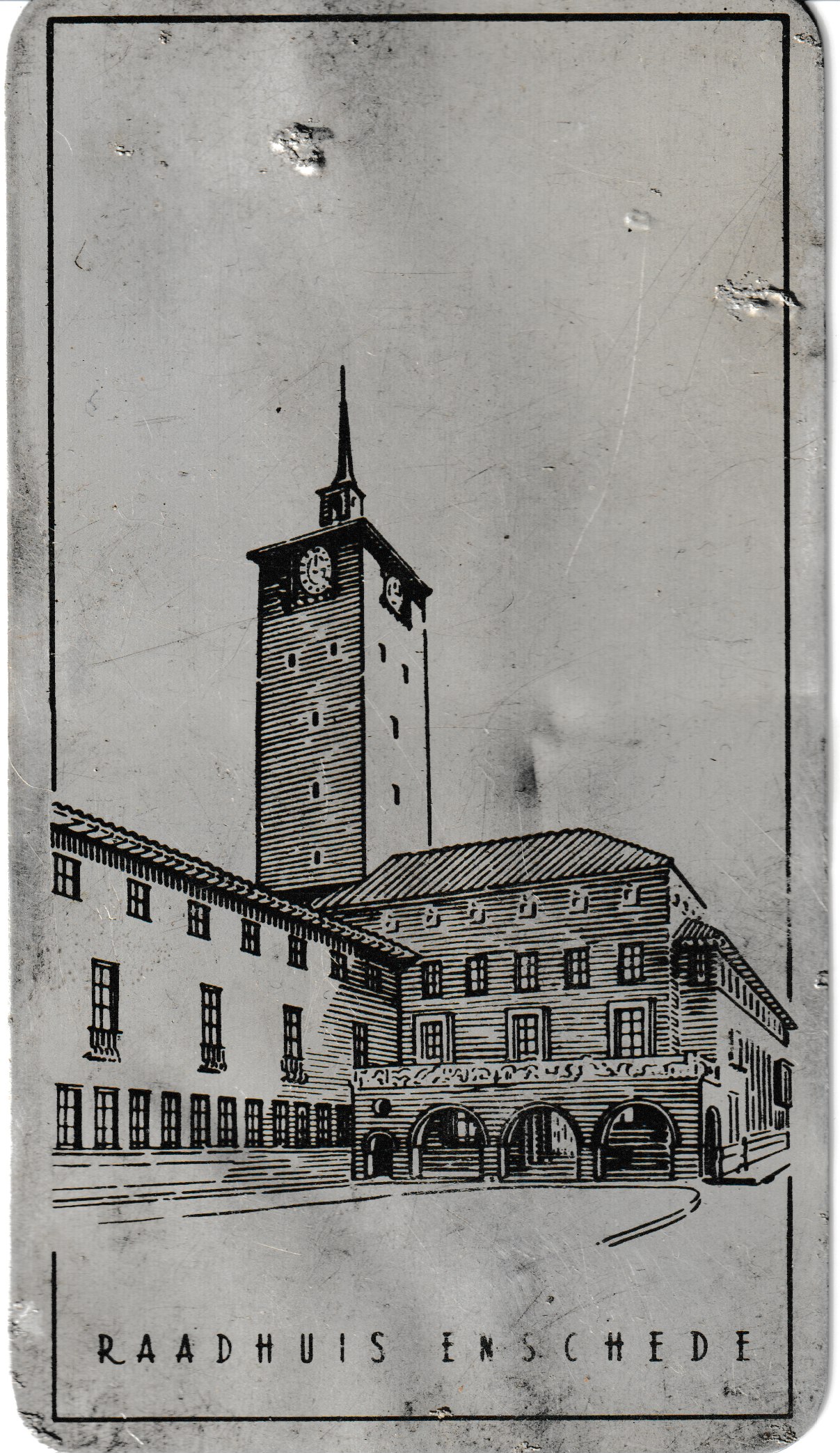 Dit is een aluminiumkalender die door het bedrijf is uitgegeven (relatiegeschenk) door een van de bouwers van het stadhuis in 1932.