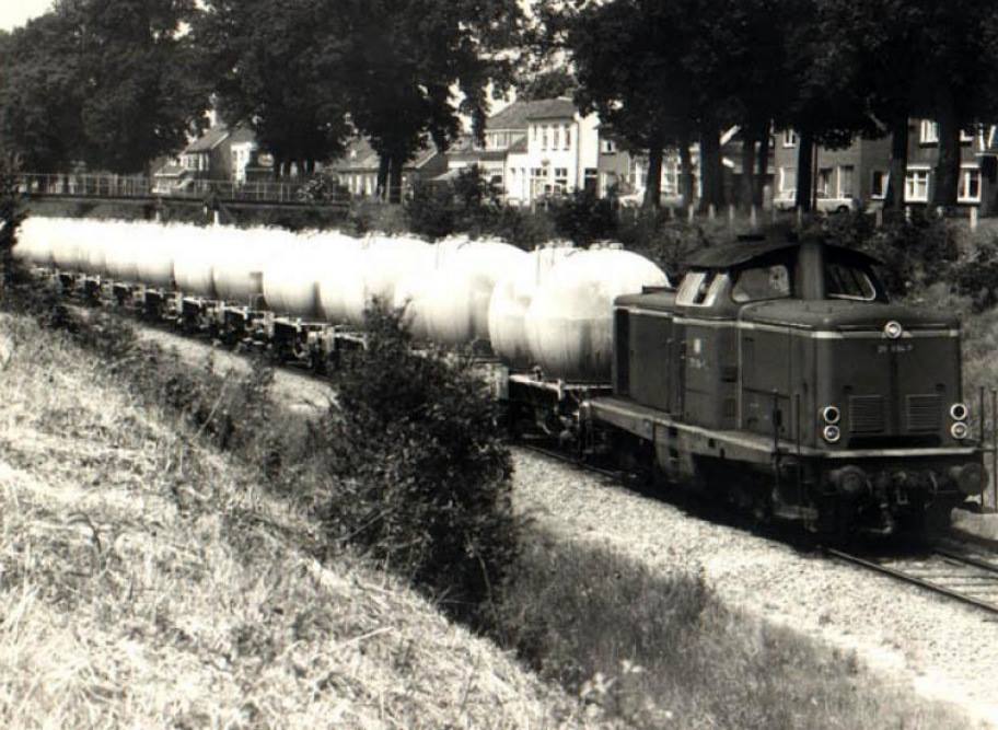 Molenstraat De trein naar Duitsland op de spoorlijn Enschede-Gronau jaren 70.jpeg