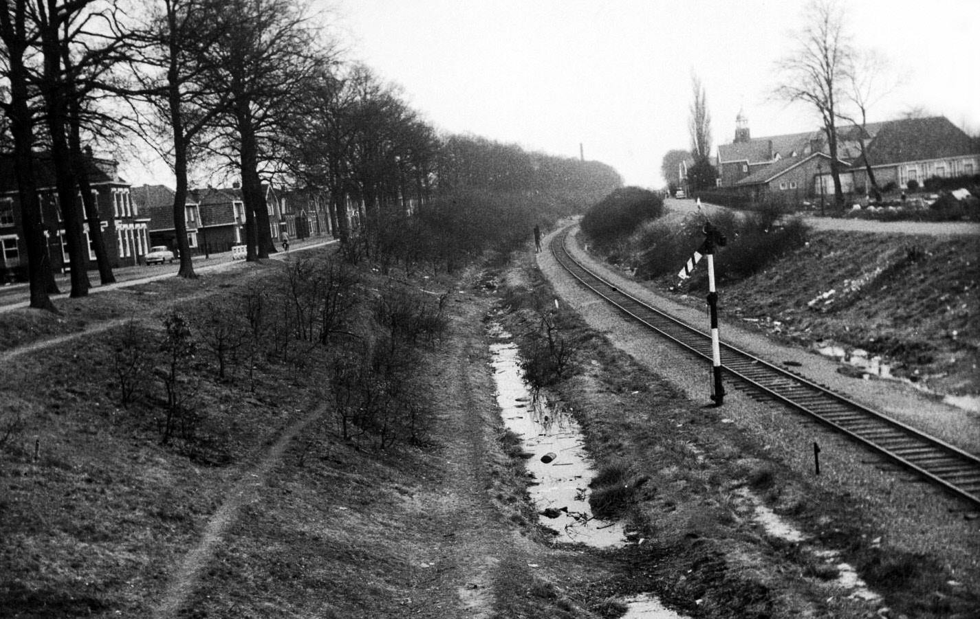 Parallelweg Vanaf Hengelosestraat met spoorlijn Gronau en rechts Leeftink 26-12-1975.jpeg