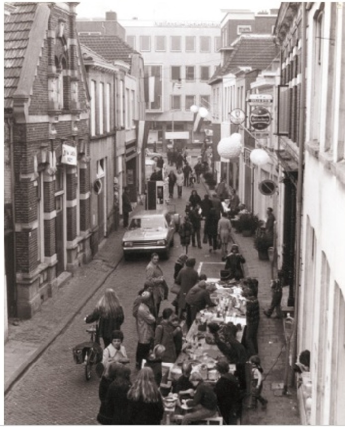 Walstraat 11 Richting Van Loenshof met café de Rode Leeuw, manifestatie i.v.m. opknappen Walstraat 16-12-1972.jpg