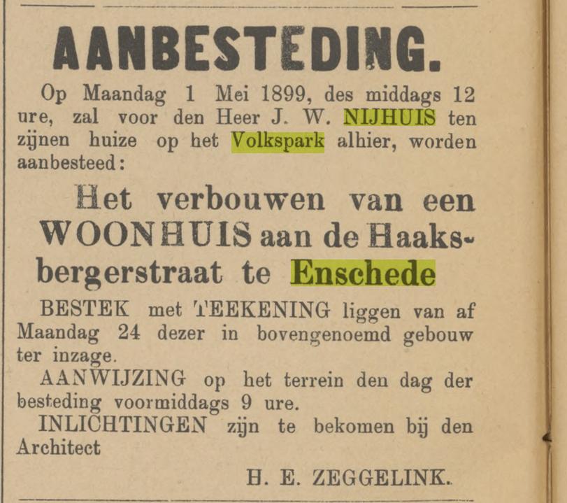 Parkweg Volkspark restaurant uitbater J.W. Nijhuis advertentie Tubantia 26-4-1899.jpg