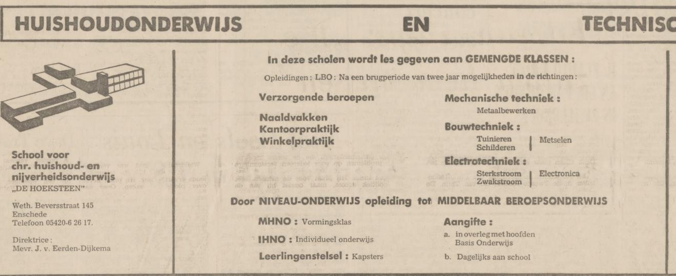 Wethouder Beversstraat 145 school voor Chr. huishoud- en technisch onderwijs advertentie Tubantia 2-2-1974.jpg