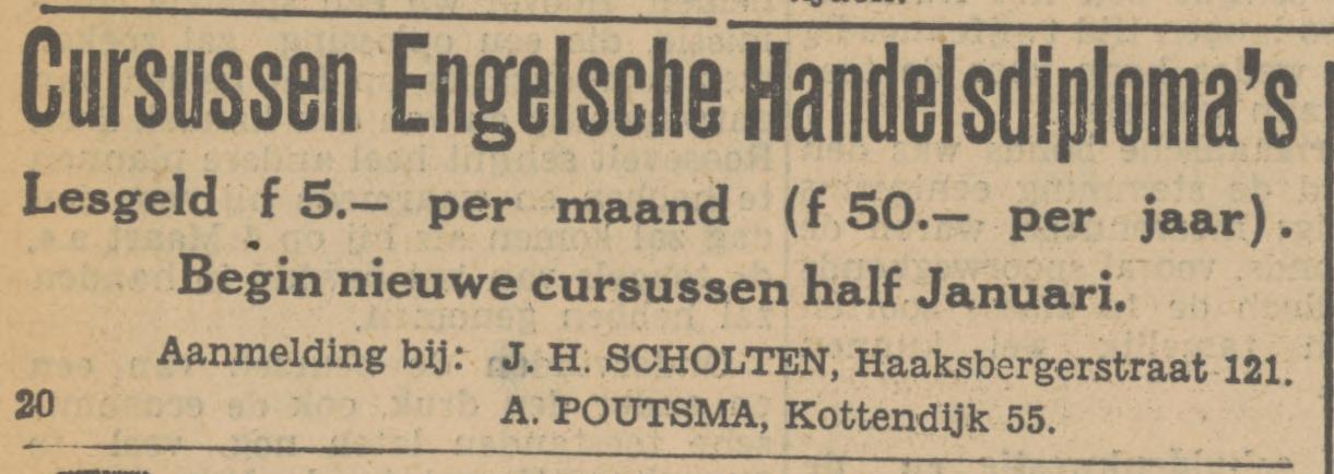 Poutsma A. onderwijzer, leeraar Engelsch Kottendijk 55 advertentie 28-12-1932