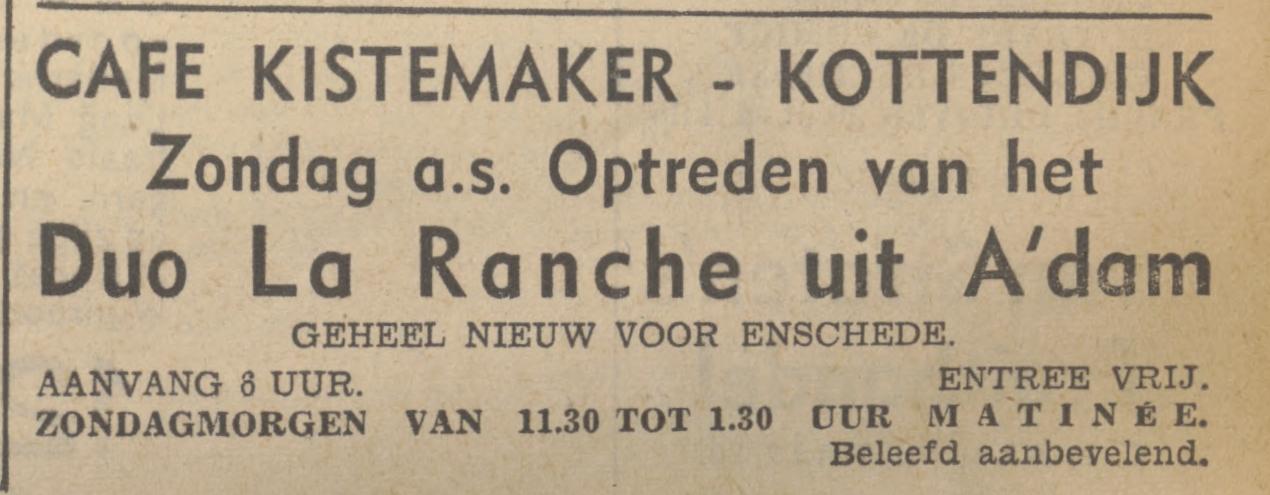 Kistemaker S.H. caféhouder Kottendijk 72 advertentie 20-10-1932 en 11-11-1939 krantenbericht 8-5-1958