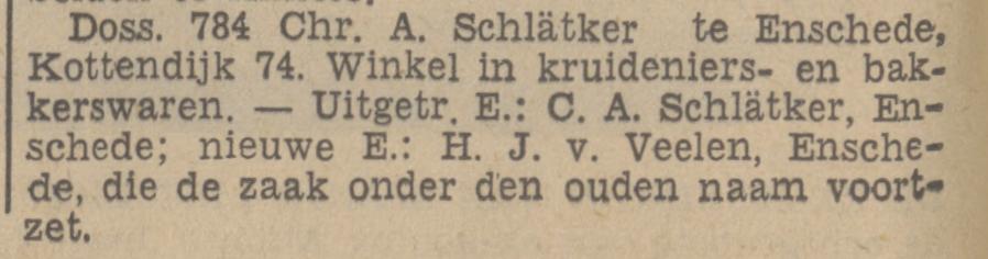 Veelen H.J. van kruidenier Kottendijk 74 krantenbericht 30-7-1938 advertentie 1-7-1943