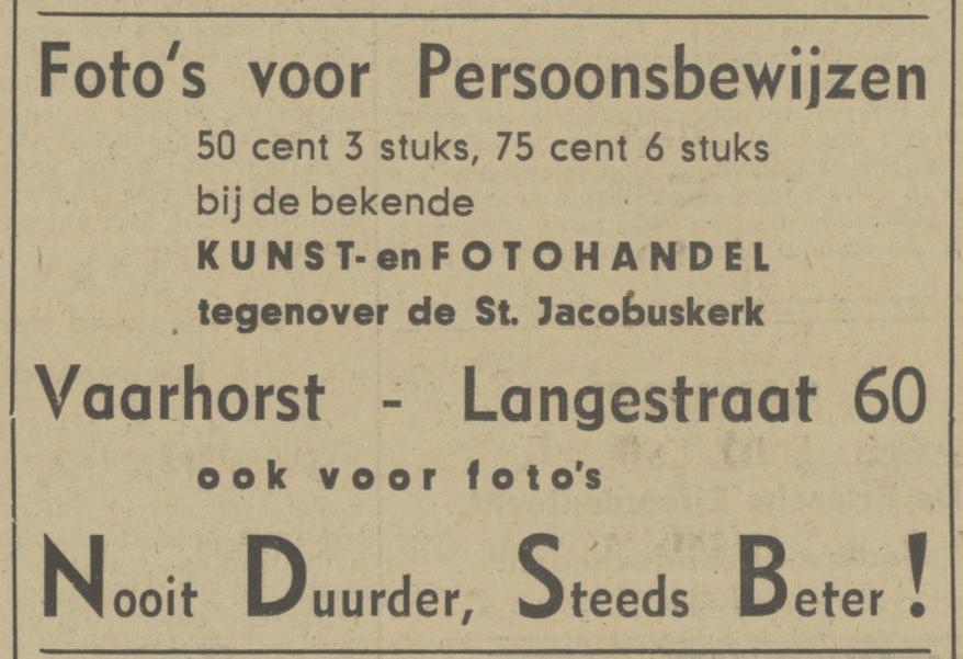 Vaarhorst M.Joh.A. kunsthandel Langestraat 60 advertentie 4-2-1941