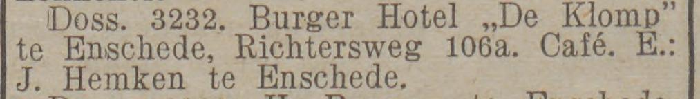 In het pand Richtersweg 106a hoek Grevestraat zat vroeger het Hotel cafe De Klomp van Johan Hemken.
