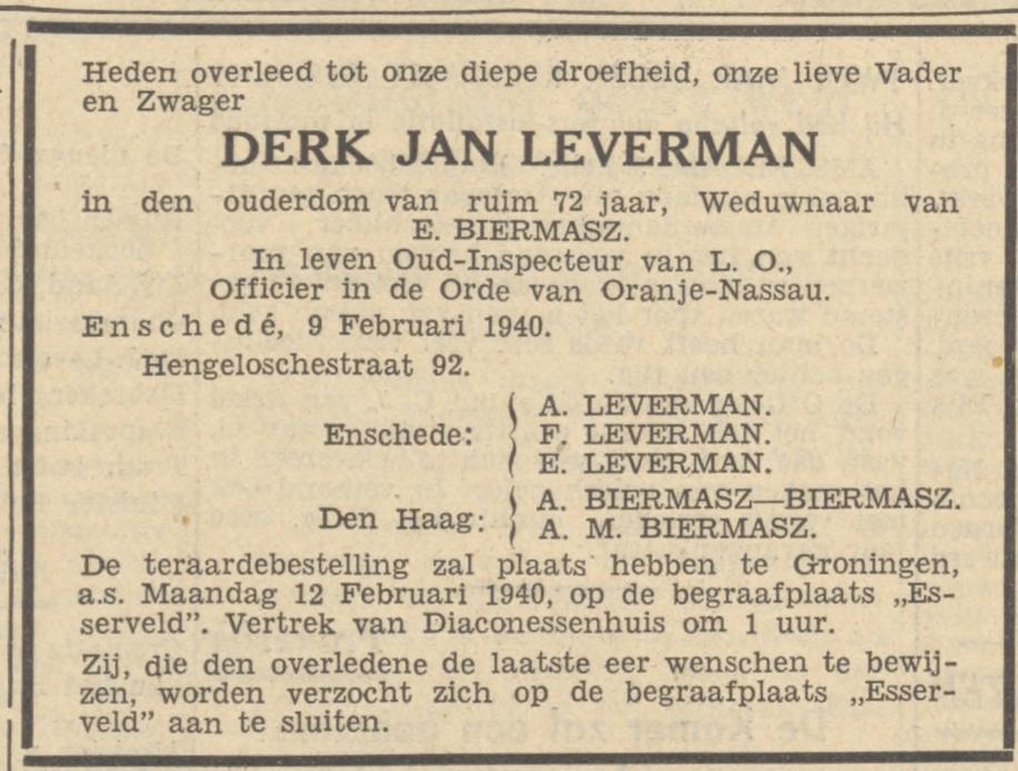 Hengelosestraat 92 D.J. Leverman overlijdensadvertentie 9-2-1940.jpg