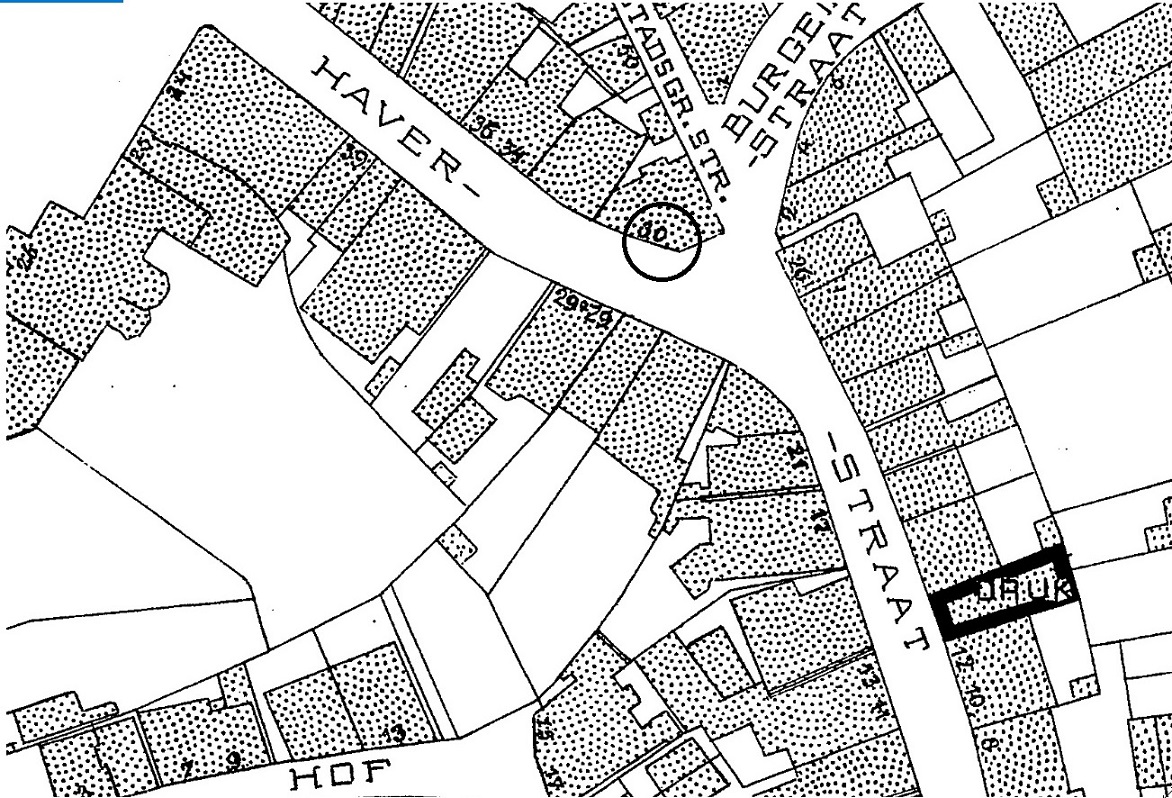 Het pand Haverstraat 30 op de hoek Stadsgravenstraat en toen Burgemeesterstraat is later vernummerd tot Haverstraat 72 en weer later Haverstraatpassage 72. In dit pand heeft ook jarenlang de winkel van Stolker gezten.