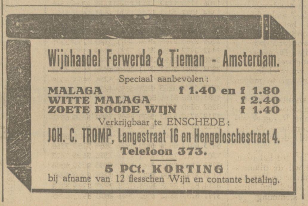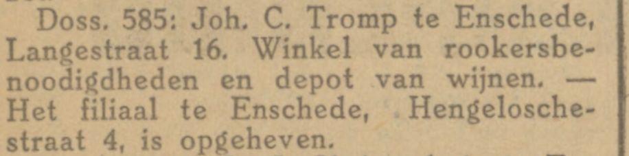Tromp, J.C., Sigaren- en Wijnhandel, Langestraat 16.