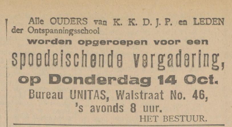 Ik heb van de afkorting K.K.D.J.P. niets kunnen vinden. Ik denk dat J.P. Jonge Protestanten zal betekenen. Ik heb wel iets van de vakbond Unitas kunnen vinden.