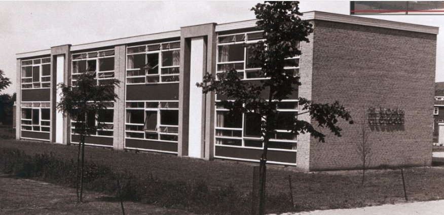Dat zijn de MUWI systeemscholen (type 1 en 2 de zogenaamde gangenschool) van de vroege jaren '60. Een eenheidsontwerp van de gemeente architect dat in alle nieuwe uitbreidingswijken werd neergezet, zowel voor openbaar als bijzonder onderwijs. De meeste zullen inmiddels wel weer gesloopt zijn, het was echt utiliteitsbouw.