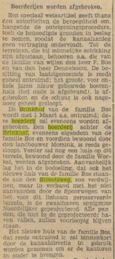 Strootsweg afbraak boerderij Brinkhof advertentie Tubantia 14-3-1934.