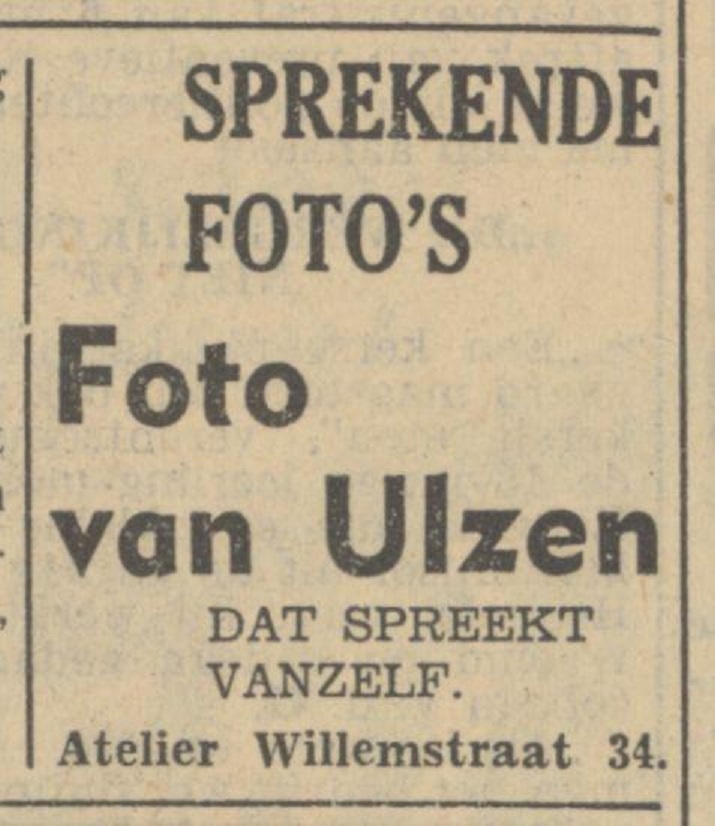Willemstraat 34 Foto van Ulzen advertentie Tubantia 17-11-1950.