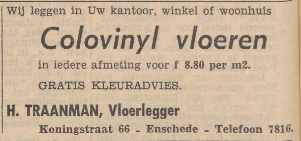 Koningstraat 66 H. Traanman vloerlegger advertentie Tubantia 22-10-1957