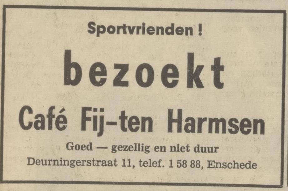 Deurningerstraat 11 cafe Fij advertentie Tubantia 10-8-1971.