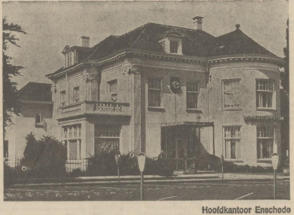 Hoedemakerplein 5 hoek M.H. Tromplaan 1 hoofdkantoor Bondsspaarbank voor Twente krantenfoto Tubantia 2-1-1971 vroeger villa Scholten.jpg