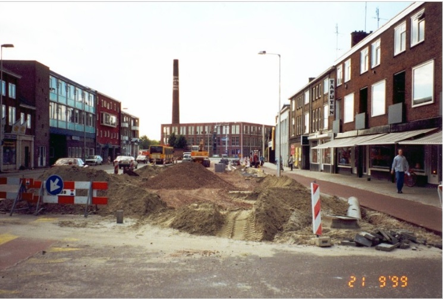 Haaksbergerstraat 138-142 rechts. Aanleg kruising Blekerstraat, Getfertweg Zuiderval op de achtergrond het Janninkscomplex. 21-9-1999.jpg