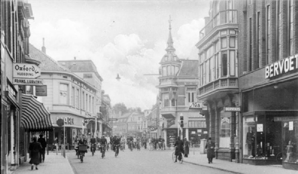 Langestraat hoek Haverstraat J. Velleman & Co Magazijn Sport advertentie Tubantia 13-12-1940.