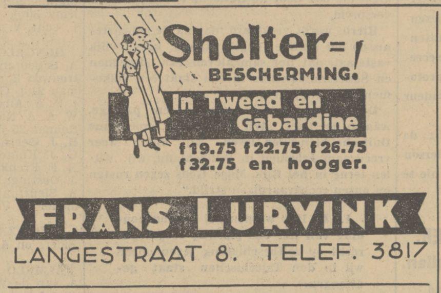 Langestraat 8 Frans Lurvink advertentie Tubantia 15-9-1938.